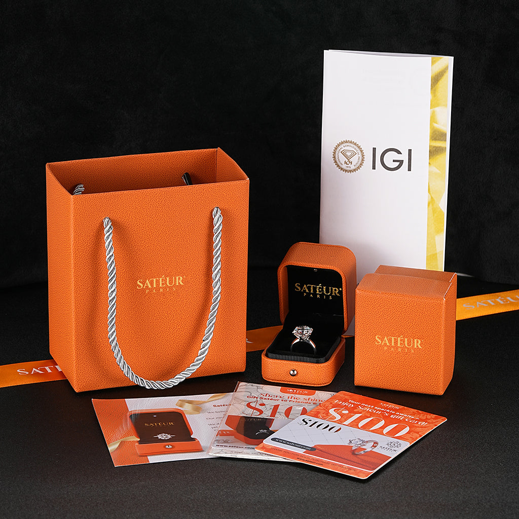 كل ماسة مختبر Satéur تأتي مع شهادة IGI—تثبت أصالتها، وقصها، ووضوحها (VS+)، وتصنيف اللون D–F.