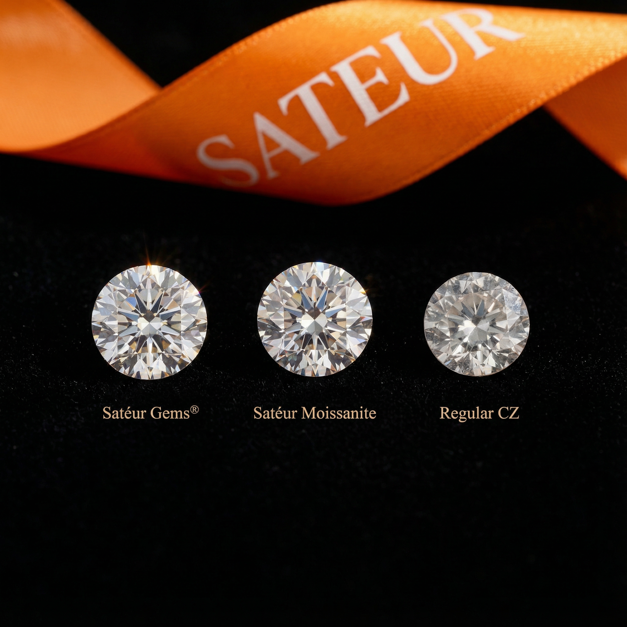 Brillanz (Brechungsindex): Satéur Gems®~2.39 / Moissanit~2.65