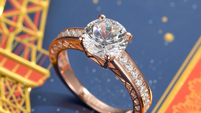 C'est notre concept signature : une bague qui ressemble à un diamant de 10 000 $ — mais ne coûte que 1 %. Pas de dettes. Pas de compromis. Juste de l'éclat.